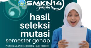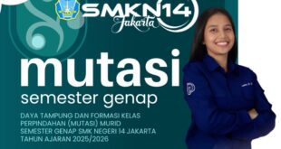 Kami sampaikan bahwa rangkaian seleksi perpindahan (mutasi) murid semester genap Tahun Ajaran 2025/2026 di SMK Negeri 14 Jakarta telah selesai dilaksanakan pada 7-13 Januari 2026. Berdasarkan hasil seleksi tersebut, peserta didik yang dinyatakan lolos telah ditetapkan sesuai dengan daya tampung dan formasi kelas yang tersedia. Peserta yang dinyatakan lolos wajib …