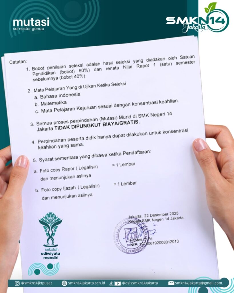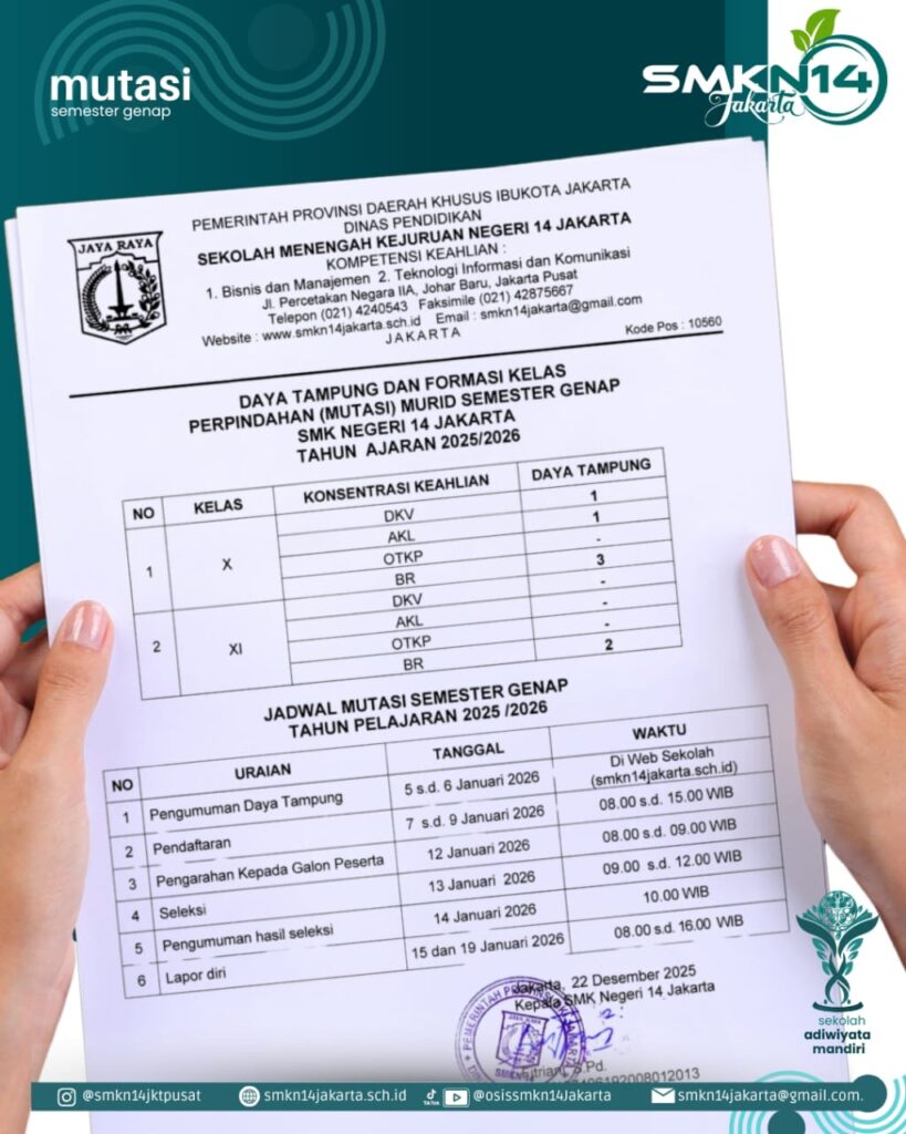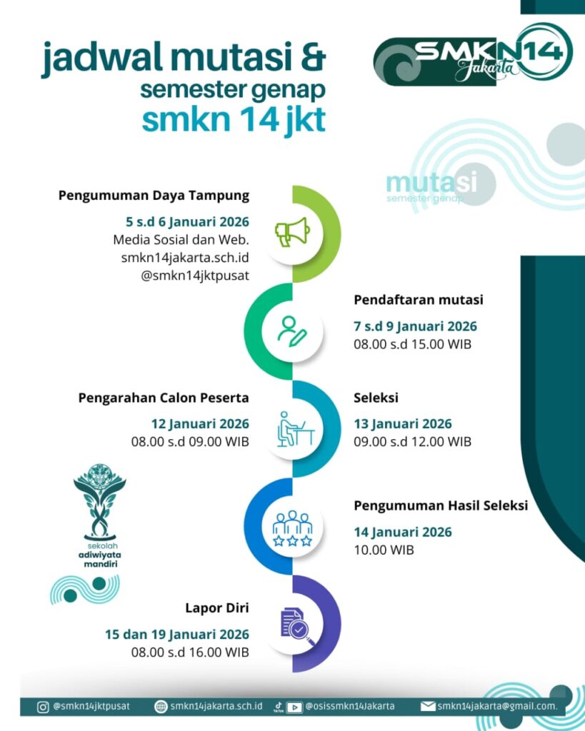 Mutasi Peserta didik Semester Genap smkn14jkt January 5, 2026 Berita, Kesiswaan Leave a comment 140 Views Share Facebook Twitter LinkedIn
